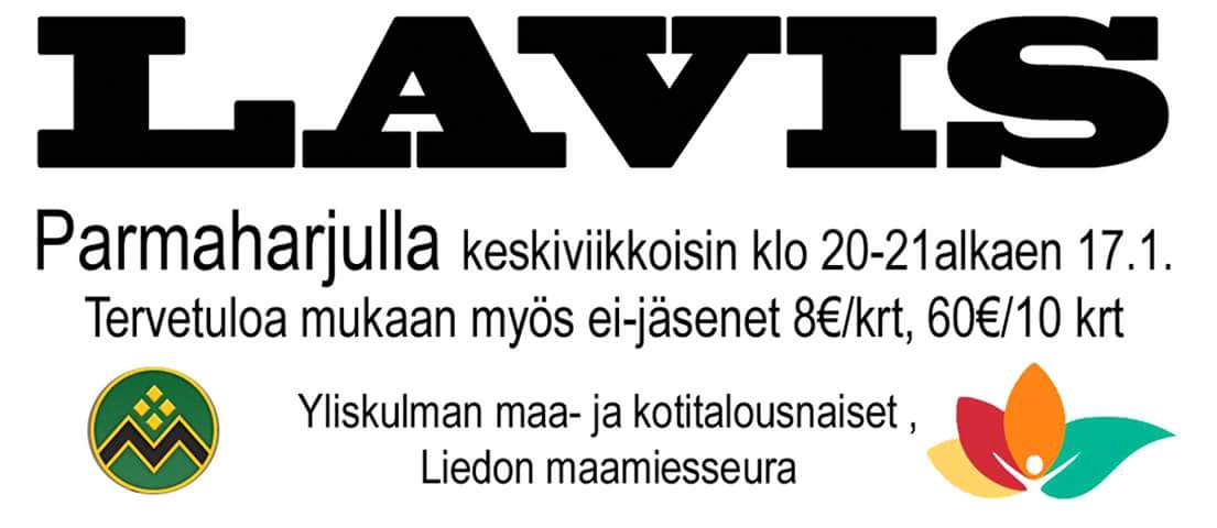 LAVIS - lavatanssijumppaa 17.1. alkaen Parmaharjulla! Järjestää Yliskulman maa- ja kotitalousnaiset sekä Liedon maamiesseura.